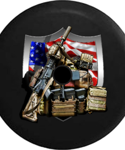 Jeep Wrangler JL Backup Camera Military Gear Rifle Army Flag Shield Crest RV Camper Spare Tire Cover