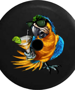 Jeep Wrangler JL Backup Camera Tropical Parrot Macaw with Sunglass & Cocktail Spare Tire Cover