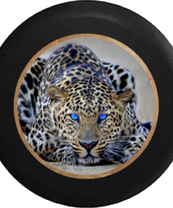Bright Blue Eyes on Leopard Cheetah Big Cat Jeep Camper Spare Tire Cover BLACK- – R224