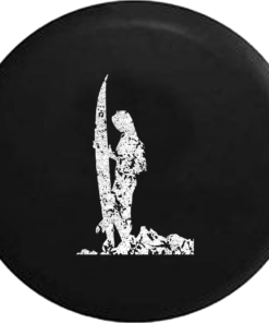 Distressed – Surfer Girl Overlooking Island Cliff Jeep Camper Spare Tire Cover T160 Custom Size